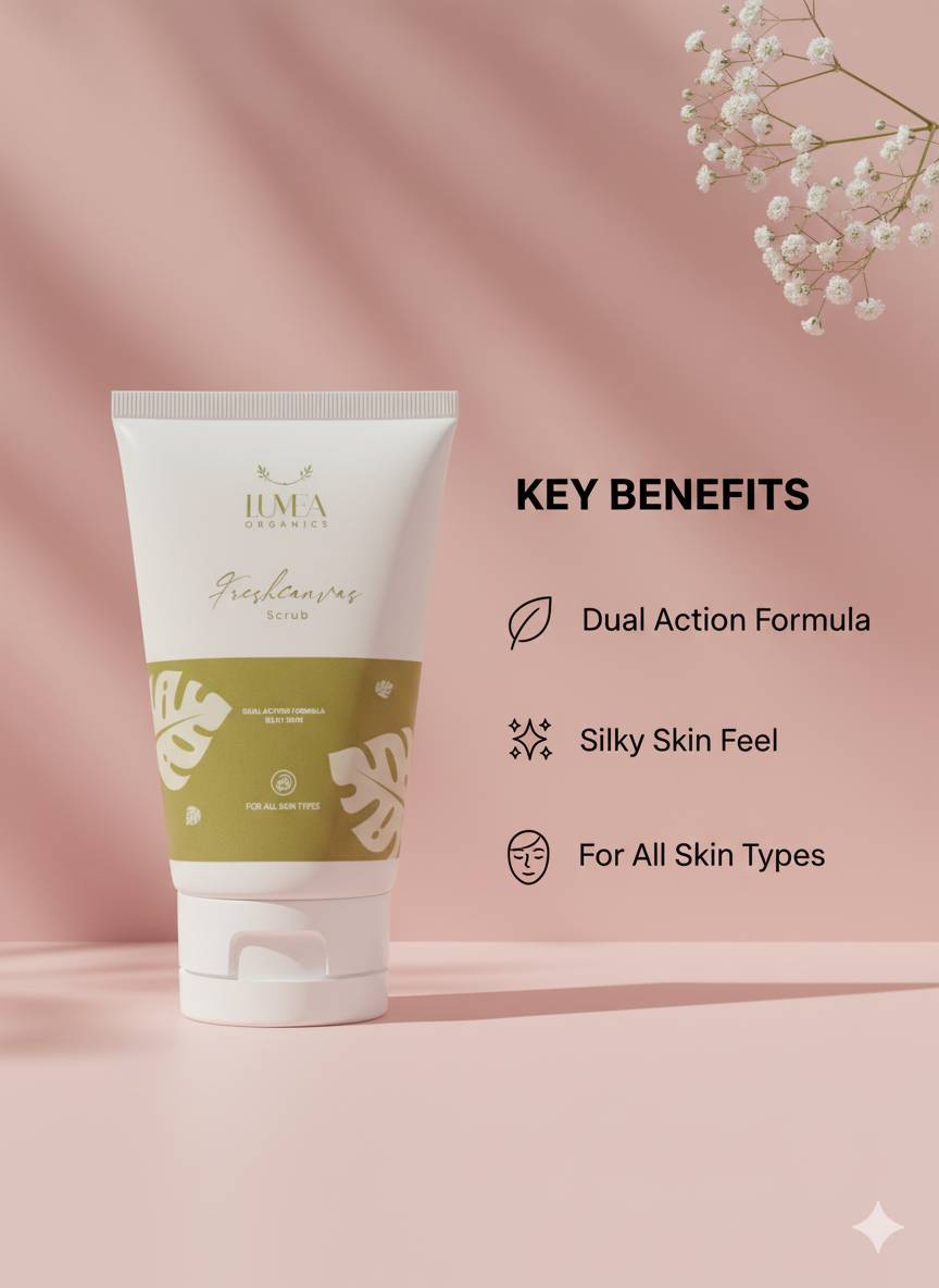 Reveal your freshest skin with our Fresh Canvas Scrub, a vitamin-rich facial exfoliant crafted to gently cleanse, nourish, and revitalize your skin.